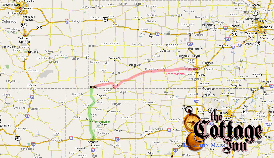 are Amarillo, Texas; Liberal, Kansas; Garden City, Kansas; Denver, Colorado;
